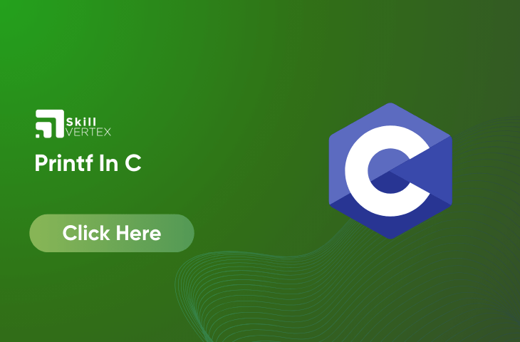Example 1: In this example, we are printing the string “Hello Skill Vertex!” in the output using the printf() function. In the printf() function what we will write inside the double quotes (” “) is printed in the output.